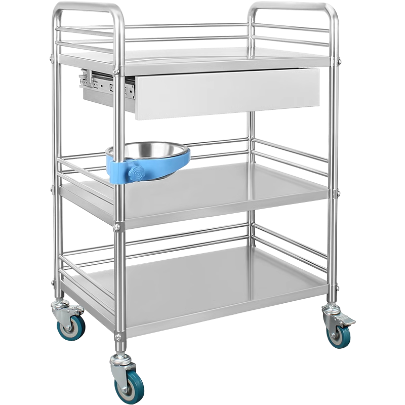 ترولی پزشکی یک وسیله قابل حمل است که برای نگهداری و جابجایی تجهیزات پزشکی در بیمارستان‌ها و مراکز درمانی طراحی شده است. این ترولی‌ها معمولاً دارای چرخ‌هایی برای حرکت آسان هستند و در طبقات مختلف خود تجهیزات ضروری مانند دارو، سرم، ابزار جراحی، و دستگاه‌های پزشکی را قرار می‌دهند. ساختار ترولی پزشکی معمولاً از فلز یا پلاستیک مقاوم ساخته می‌شود تا در برابر ضربه‌ها و شرایط بیمارستانی مقاومت داشته باشد. این ترولی‌ها برای تسهیل دسترسی سریع به تجهیزات و افزایش کارایی در مواقع اضطراری بسیار مهم هستند.